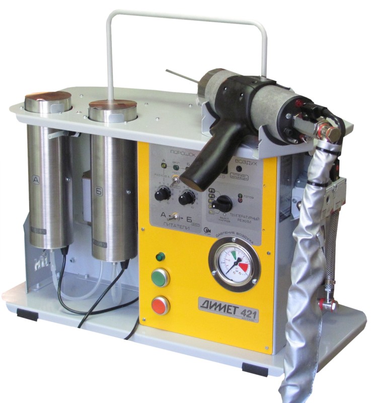 Комплект оборудования ДИМЕТ-421 предназначен для газодинамического нанесения алюминиевых, цинковых, медных, никелевых, оловянных, свинцовых покрытий при выполнении широкого спектра производственных и ремонтных работ в составе автоматизированных линий, а также в ручном режиме на рабочих постах и участках по нанесению покрытий на детали и изделия.
